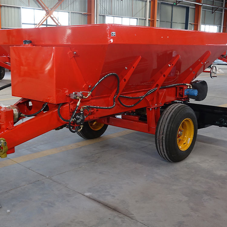 果园双侧顺肥机基于果园、菜园、葡萄园等的作业要求,在原有 2FGB 系列撒肥车基础上进行改进,对肥料进行双侧顺肥。